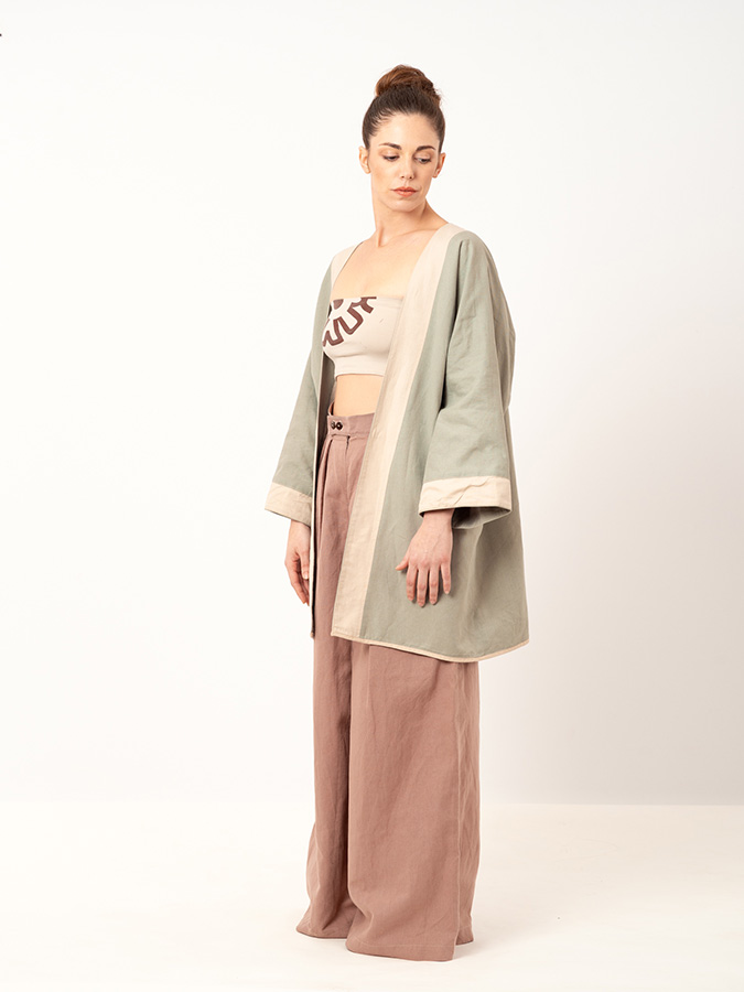 La adaptabilidad del kimono reversible sostenible Komailegom lo convierte en un elemento esencial para un armario cápsula: